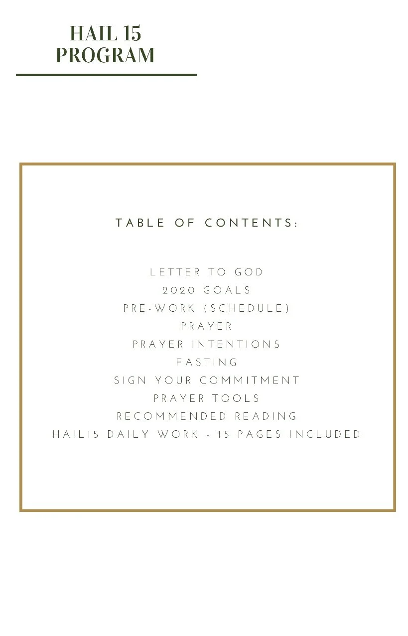The Hail15 Program is a 15-day plan to reset your mind, body, and soul to formulate a daily plan to become your best self (to be a saint) with God at the center and curb our negative thinking.